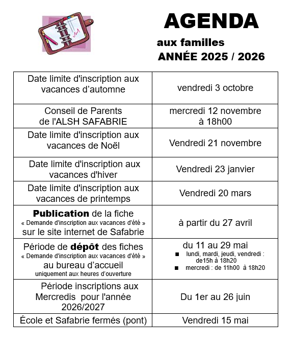 Au delà des périodes, les inscriptions se font dans la limite des places disponibles. |