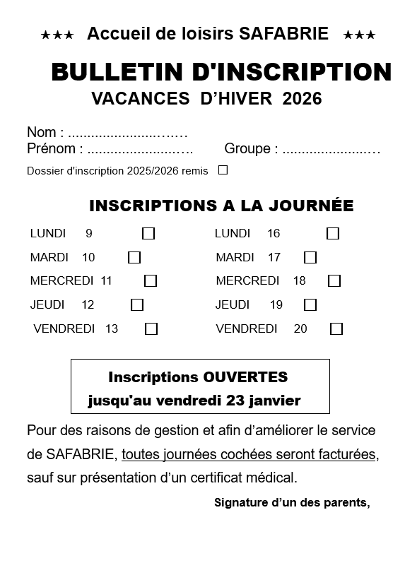 ► soit sur place à l’accueil SAFABRIE