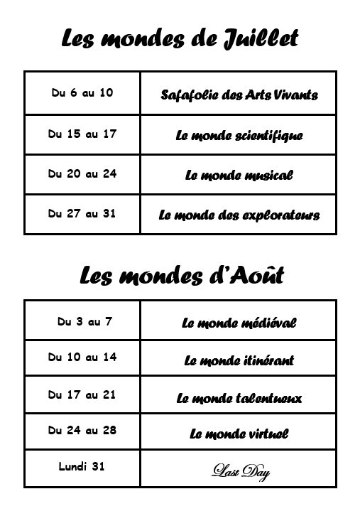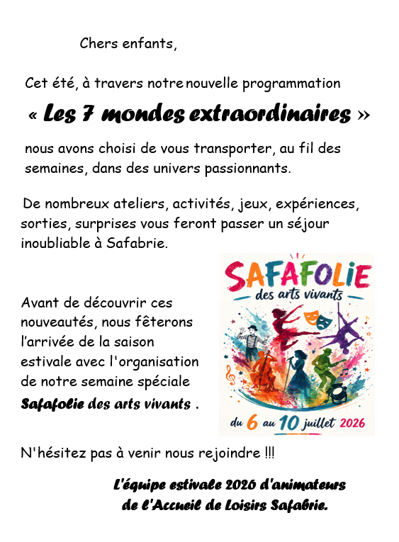 Projet d'Animation des vacances
