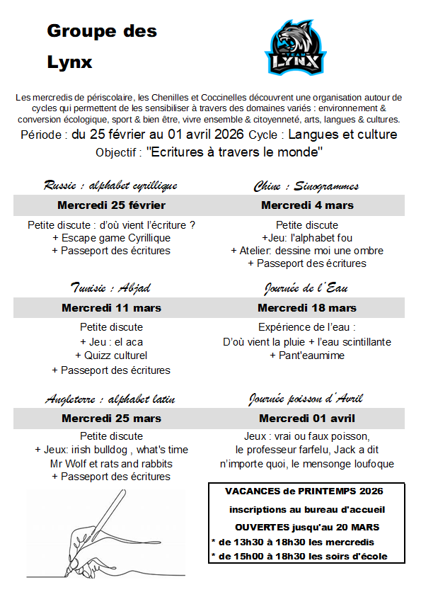 PROJET D’ANIMATION DES LYNX (CE2, CM1, CM2)